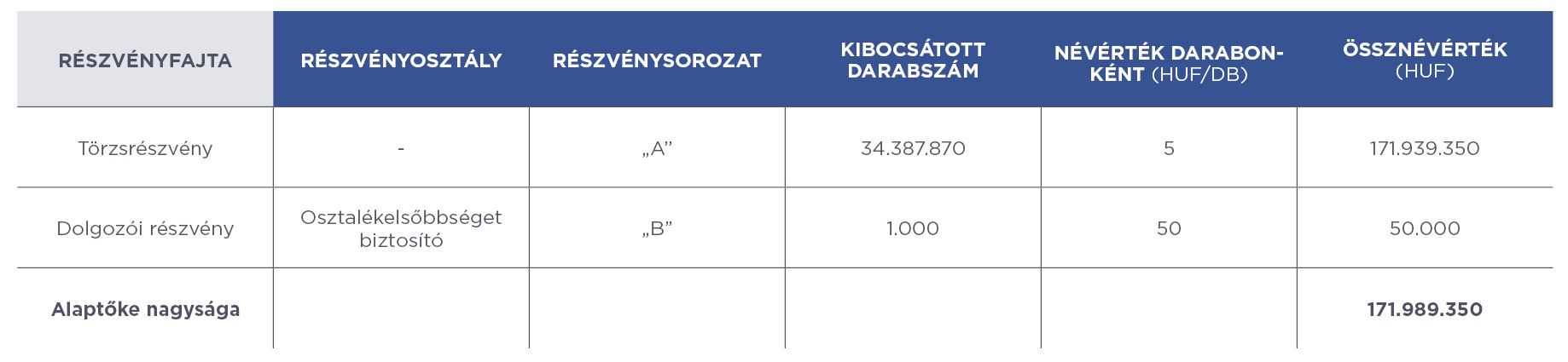 Az alaptőke összetétele:
