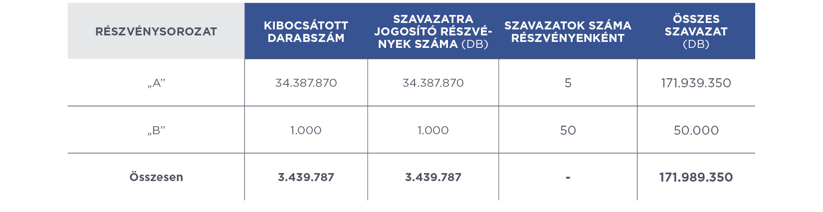 A részvényekhez kapcsolódó szavazati jogok száma: